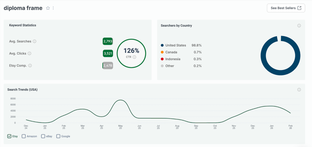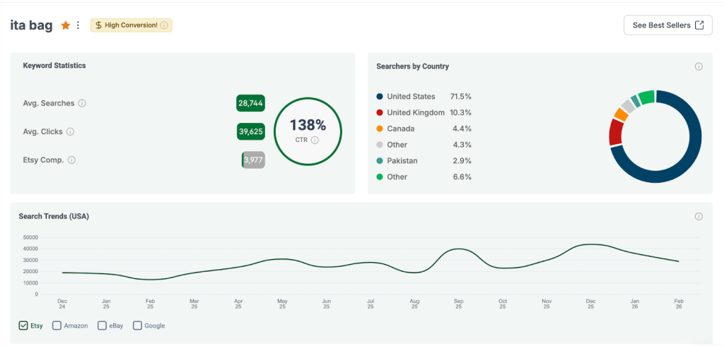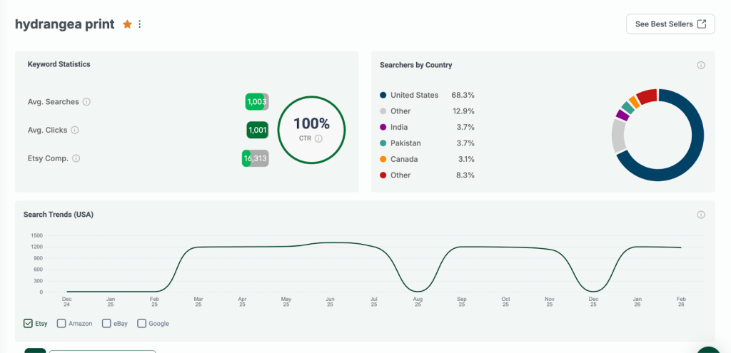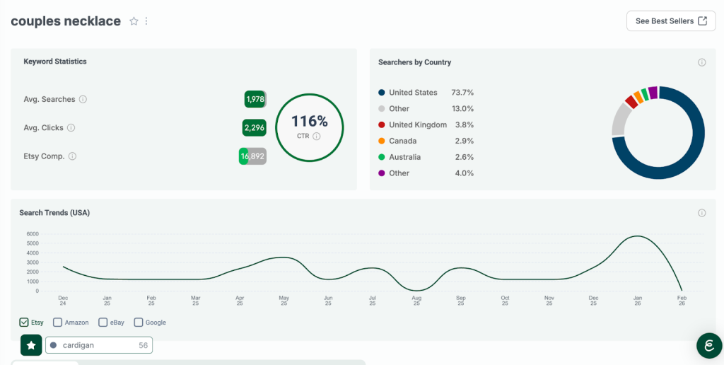 Selling on Etsy isn’t just about creativity, it’s about spotting demand early. By analyzing keyword data, search trends, and click engagement, sellers can uncover niches where buyers are actively searching but competition hasn’t fully caught up.